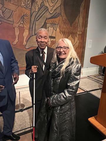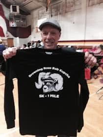 The Geator Jerry Blavat holds up a Ross Kupcha race shirt.